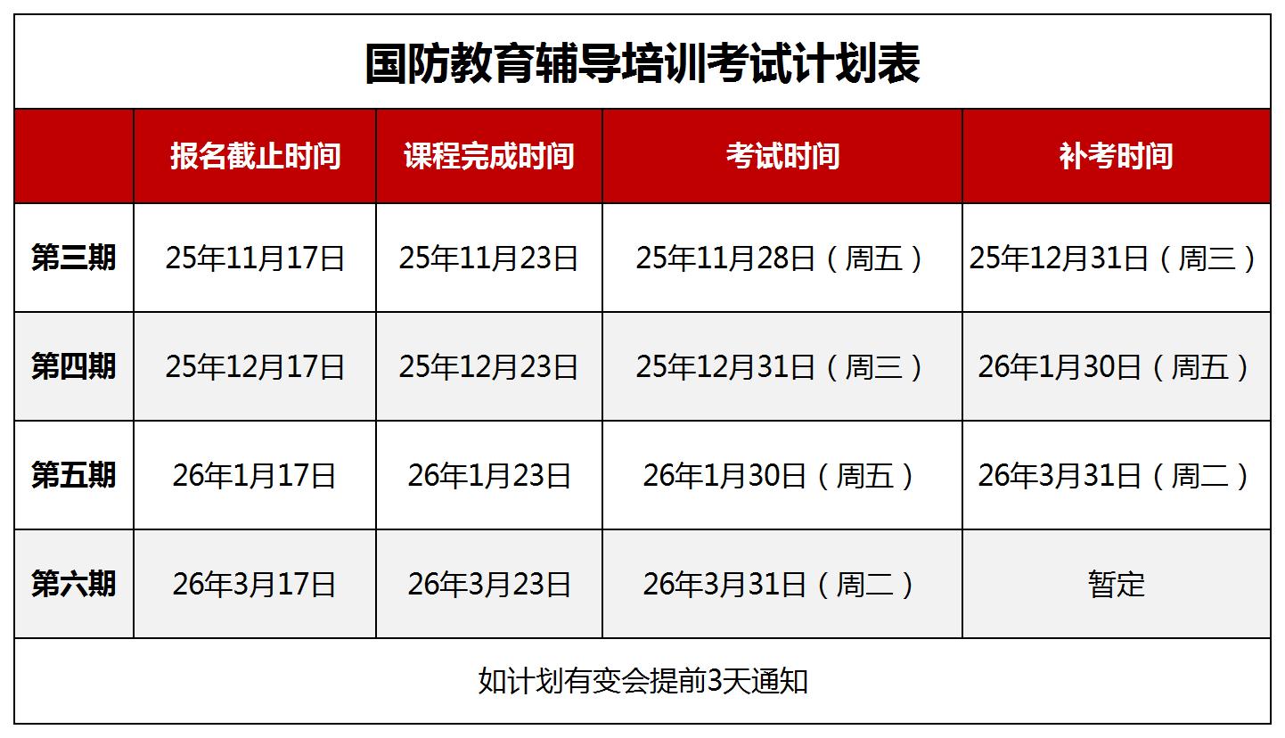 【考试计划】国防教育辅导培训考试计划