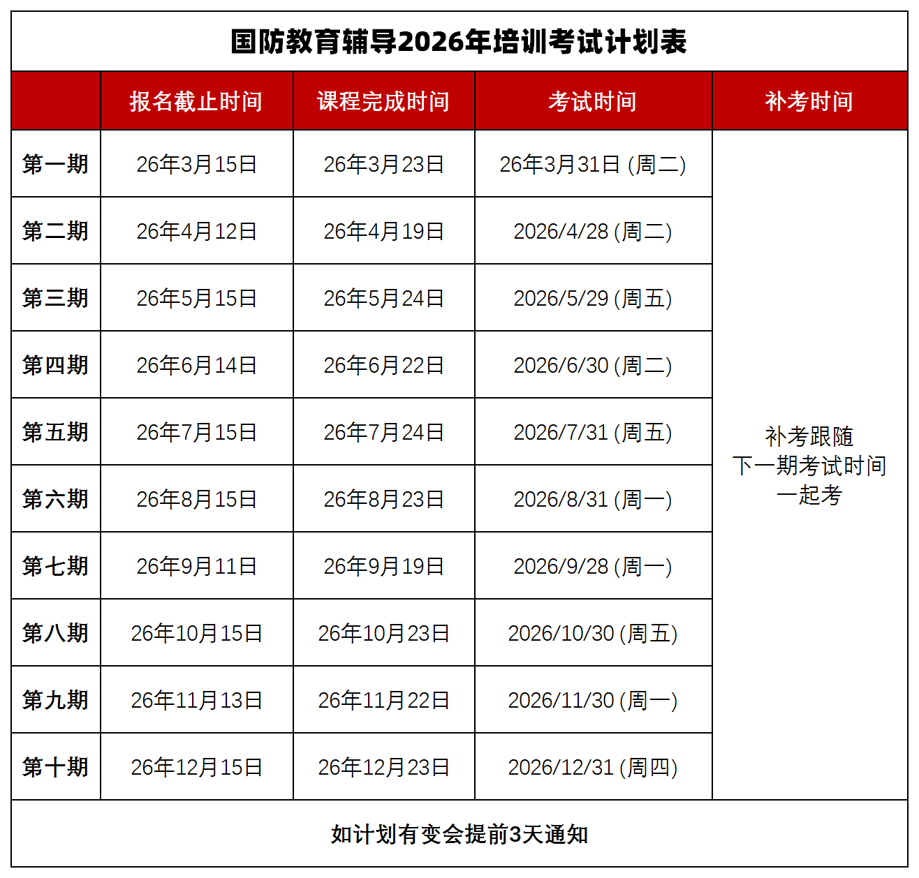 【考试通知】关于国防教育辅导培训26年1月30日考试安排的通知