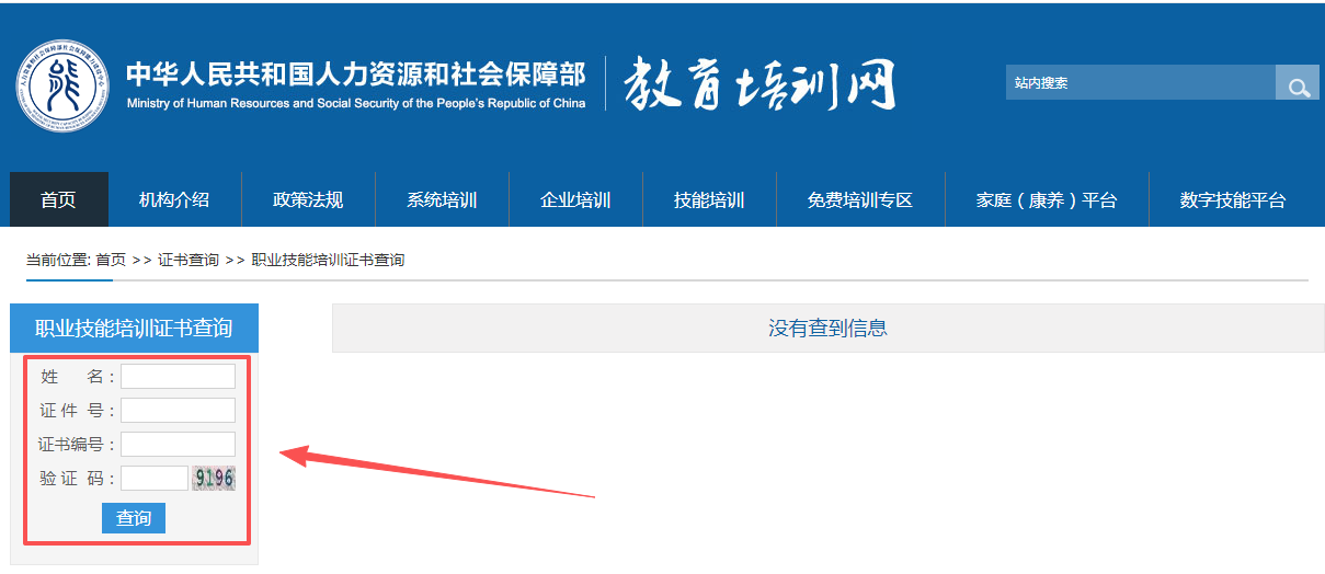 ④ 输入姓名、身份证号、证书编号、验证码查询证书上网情况。